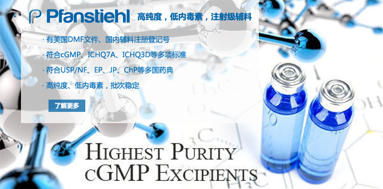 “熱烈祝賀Pfanstiehl的注射級甘氨酸Glycine(G-140)喜獲CDE登記號F20250000403, 這是Pfanstiehl產品獲得的第18個CDE登記號!”甘氨酸在醫藥輔料制劑中應用廣泛,, 可作為緩沖劑,增溶劑,穩定劑等,具有諸多優勢。Pfanstiehl秉承一貫高品質理念,為滿足全球生物制藥行業對于高品質甘氨酸的需求,隆重推出的注射級甘氨酸Glycine (G-140), 具有超高純度,超低內毒素,超低金屬殘留的特點,單獨檢測29種金屬離子,并且新增DNA,RNA,DNA酶,RNA酶和脂肪酶,亞硝酸鹽等多項質量指標的檢測,符合多國藥典規定(USP, EP, BP, JPE, ChP),可用于生物治療性藥物和疫苗的生產。產品信息:· 產品名稱:Glycine, High Purity, Low Endotoxin, Low Metals, USP, EP, BP, JPE, ChP (G-140)· 中文名稱:甘氨酸· 分子式:C2H5NO2· 分子量:75.07 g / mol· CAS號:56-40-6· 產品貨號:G-140產品特點: · 超高純度,超低內毒素,超低微生物含量,超低金屬雜質殘留· 質量指標新增DNA,RNA,DNA酶,RNA酶,脂肪酶和亞硝酸鹽檢測· 符合多國藥典:USP, EP, BP, JPE, ChP· 符合ICH Q3D標準· 符合GMP標準· 已獲DMF和CDE登記號 產品應用:· 緩沖劑· 穩定劑· 增溶劑如果您對Pfanstiehl注射級別Glycine G-140感興趣,歡迎聯系Pfanstiehl 中國區代理商北京西美杰科技有限公司獲得如下詳細的產品概況說明文件和測試樣品。Pfanstiehl Inc.最新產品系列如下,歡迎聯系北京西美杰科技有限公司獲取100g裝免費樣品。北京西美杰科技有限公司為Pfanstiehl中國代理,為客戶提供完善的技術支持與售后服務。歡迎撥打西美杰客服電話400-050-4006或者登陸網站www_xmjsci_com.3-song.com了解更多信息。 更多>